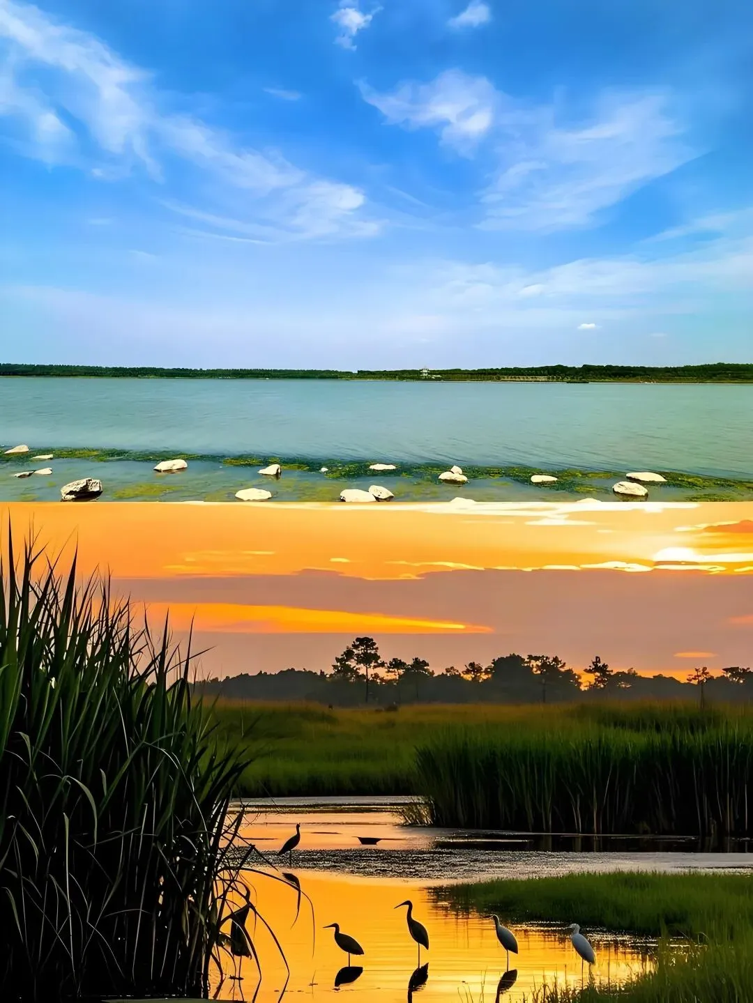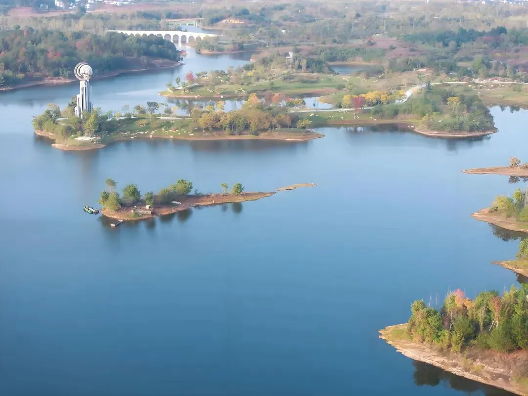🌈🎭黄鹤湖的秋色是温柔的调色盘✨湖面倒映着层林尽染的山峦,金黄、橙红、深褐交织成油画般的风景,随手一拍都是治愈系大片📸。清晨的薄雾笼罩湖面,仿佛置身水墨画,适合慢悠悠地散步或骑行,感受湖风拂面的惬意。