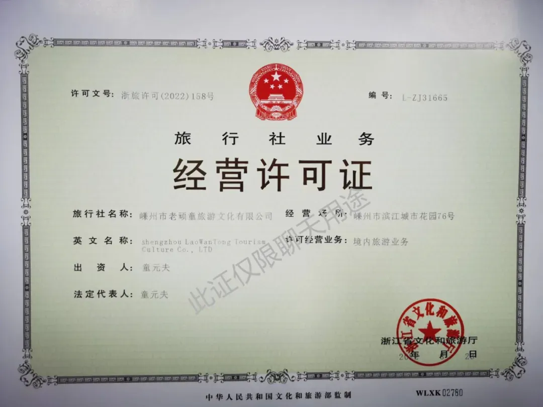 报名旅游请认准许可证:L-ZJ31665