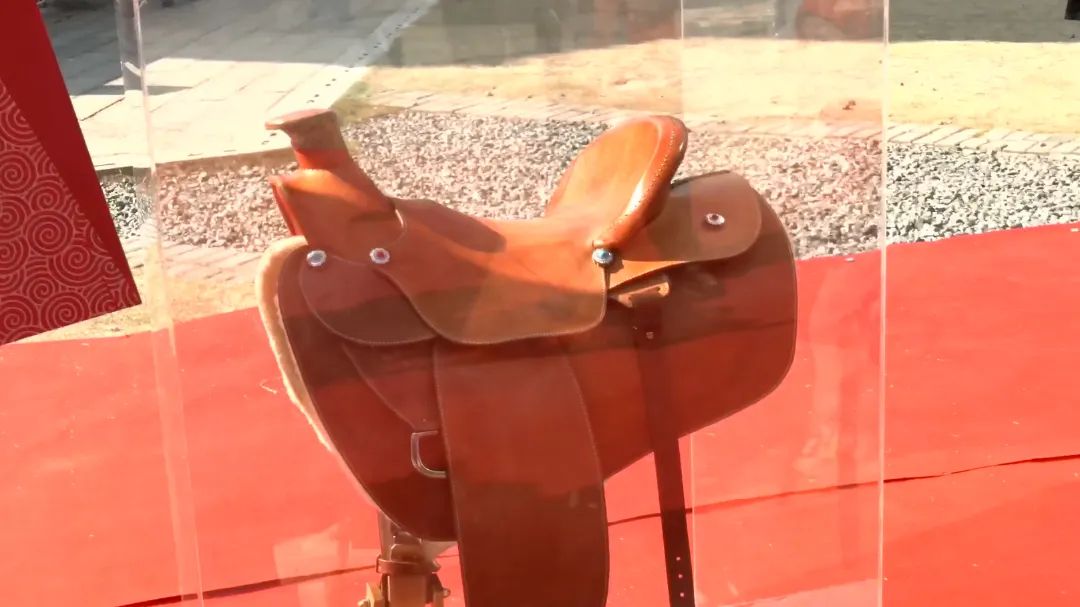 安海青年协会“与子”团队成员黄小擎告诉记者,这个作品融入回纹、祥云、水纹等安海山海元素,搭配“梅兰竹菊”四君子纹样,呼应养正中学“严正勤实”的校训精神。马鞍由安海兴业科技采用非遗制革工艺打造,“䯃驹”二字,既是“鞍”的古文字变形,又谐音“安居”,寄托着安海青年安身立命的美好愿景。
