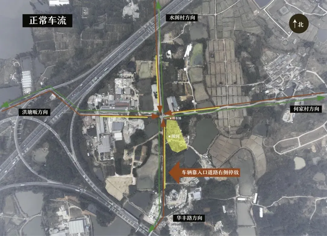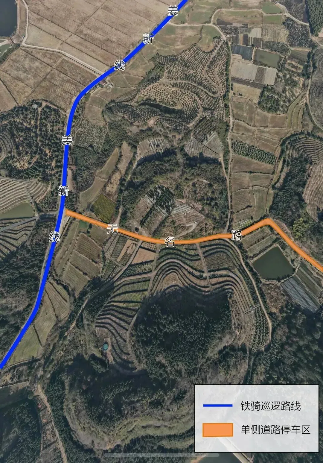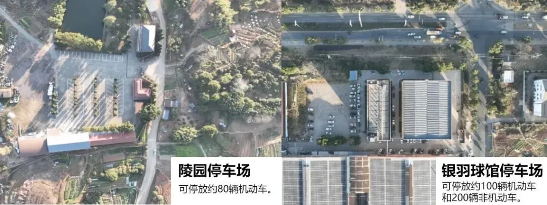 停满后可在指定橙色区域及周边农村道路靠右有序停放。
