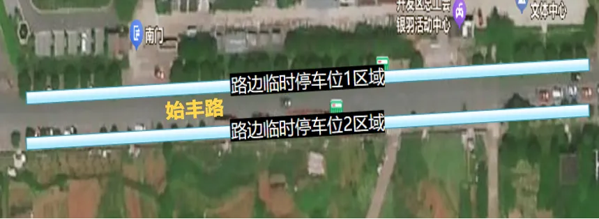当银羽球馆停满后,车辆可以临时停放在始丰路两侧非机动车道。