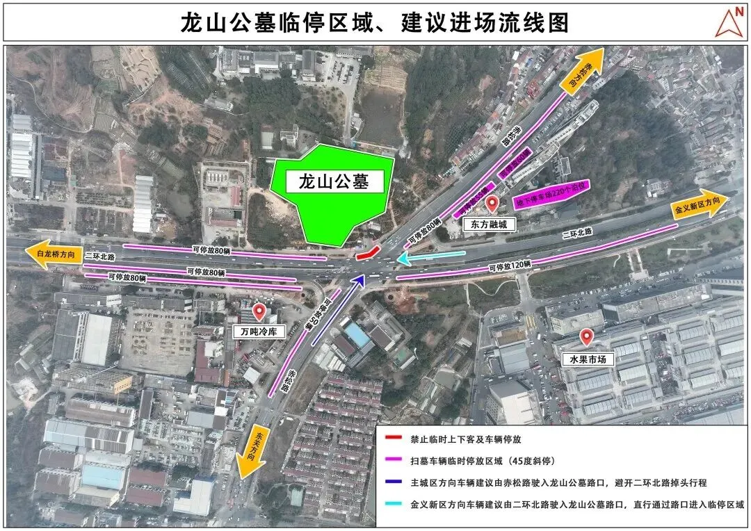 龙山公墓位于二环北路赤松路西南口,预计大年初一人流量约3万人次。