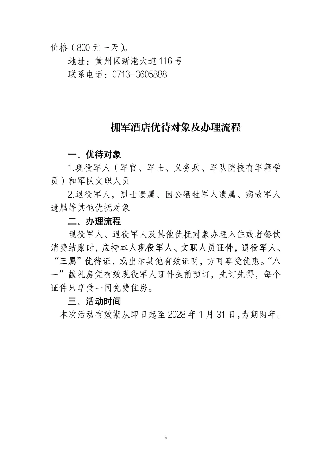 推出首批10家拥军酒店