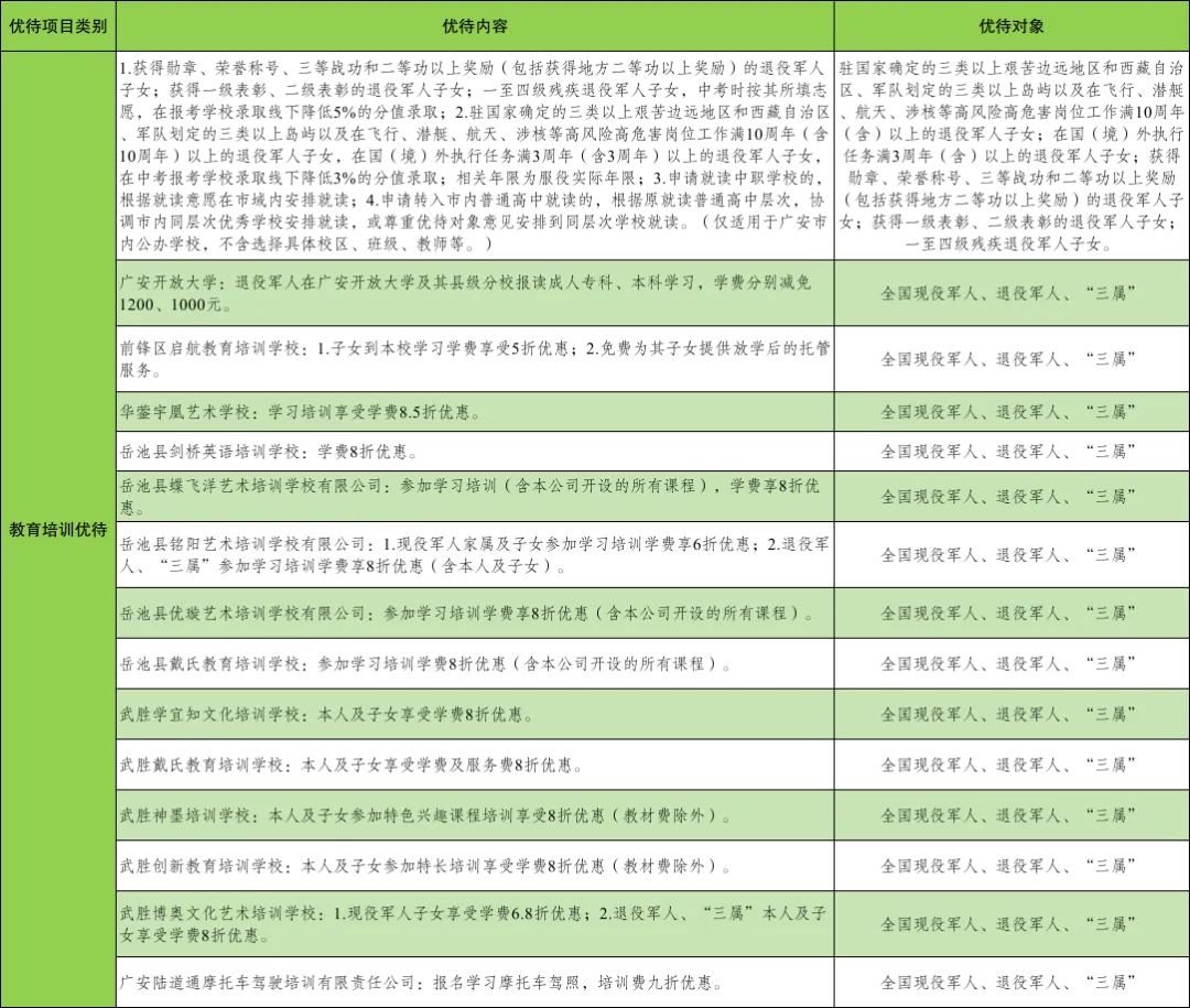 四川 近日 广安市退役军人事务局 面向社会公布 最新优待项目清单 生活服务等多领域 这波诚意满满的福利 快来接收吧!
