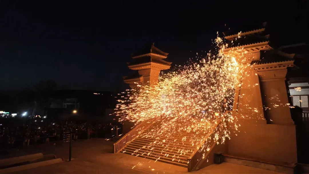 活动内容:在落雁砭大桥上举行铁水打花活动,铁水打花象征着群众对美好生活的向往,是典型的民俗焰火活动,展现陕北特色文化,也反映了文化交融的历史脉搏。