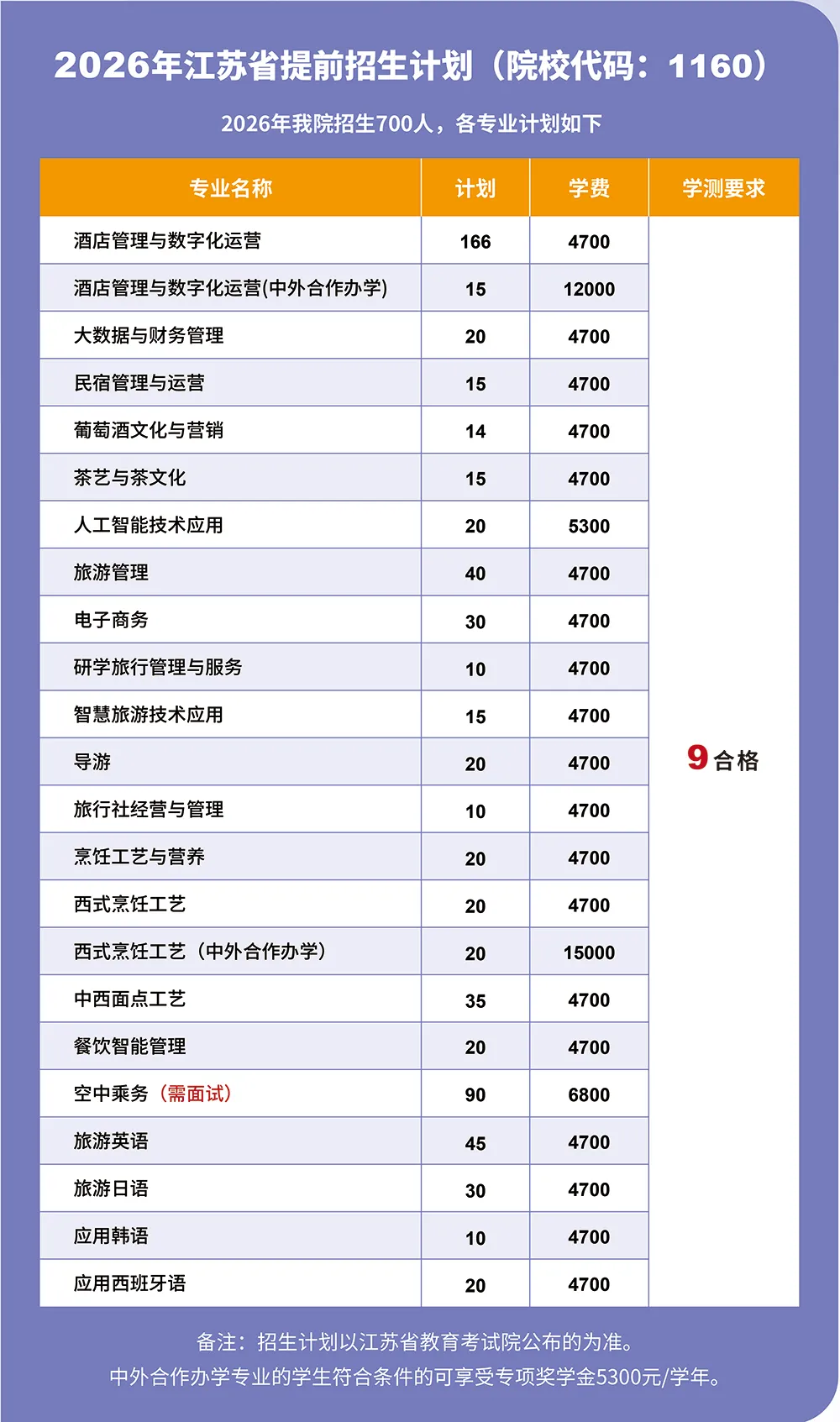 【2026单招】南京旅游职业学院(1160)提前招生报考指南(附近两年对比)