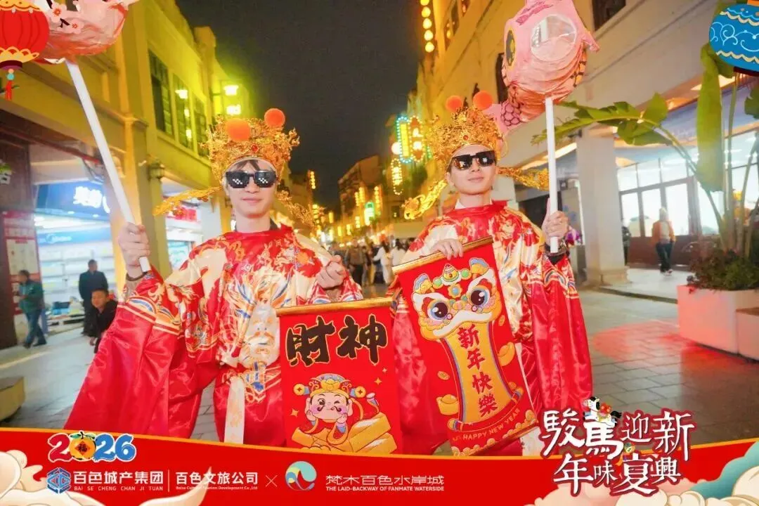 “大美右江·长寿福禄”综合体主打民俗展演,这里是“村意盎然·大美右江”2026右江迎春系列活动的举办地,2月至3月期间开展“村BA”、村舞赛、村T赛、村歌赛等活动,还有年货好物、非遗文创等你来。