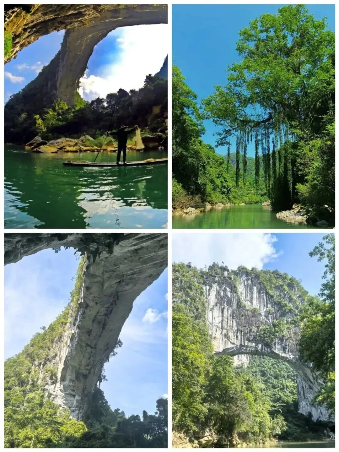布柳河蜿蜒穿流于连绵起伏的岩溶峰丛之间,两岸悬崖陡峭,常年绿树成荫,被专家称为 “植物的王国,鸟类的天堂”,由三座大山塌陷形成的天然石拱桥——仙人桥,被专家称为世界上最大、最美的水上天生桥。