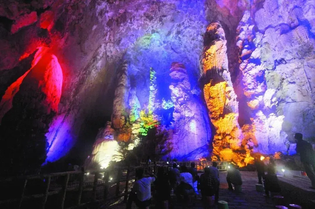 吉星岩景区内,钟乳石在灯光的映衬下如梦如幻。2月17日-23日,这里将举办“矮马送福,吉星高照”新春嘉年华活动,推出“点亮吉星”数字祈福、“七叶神树祈鸿福”等特色活动,穿民族服饰游览的游客,可免费领取当地小礼品。