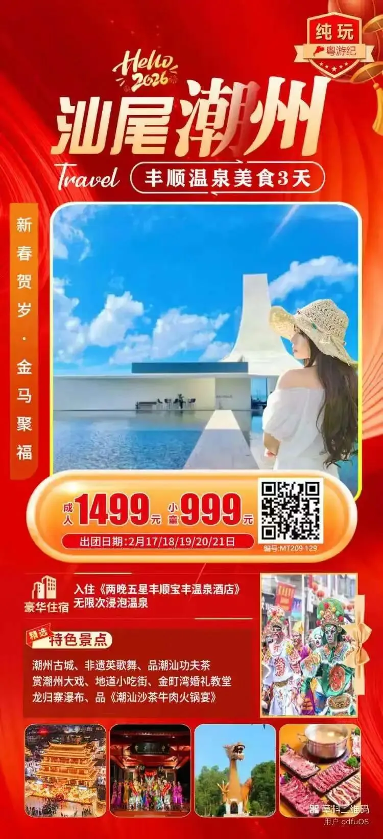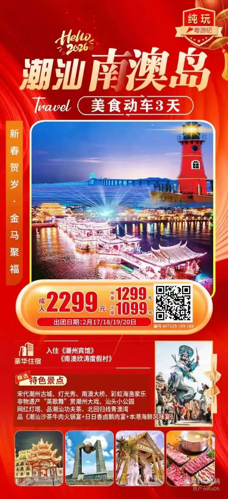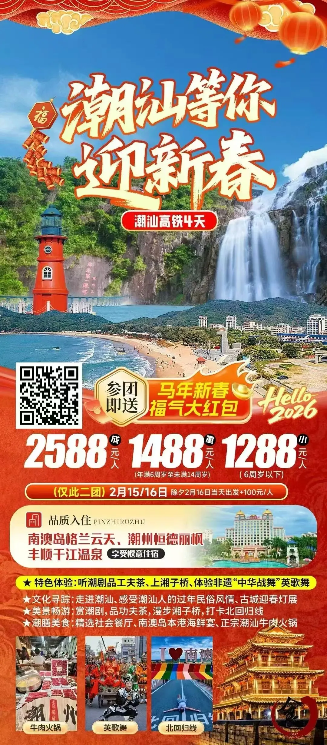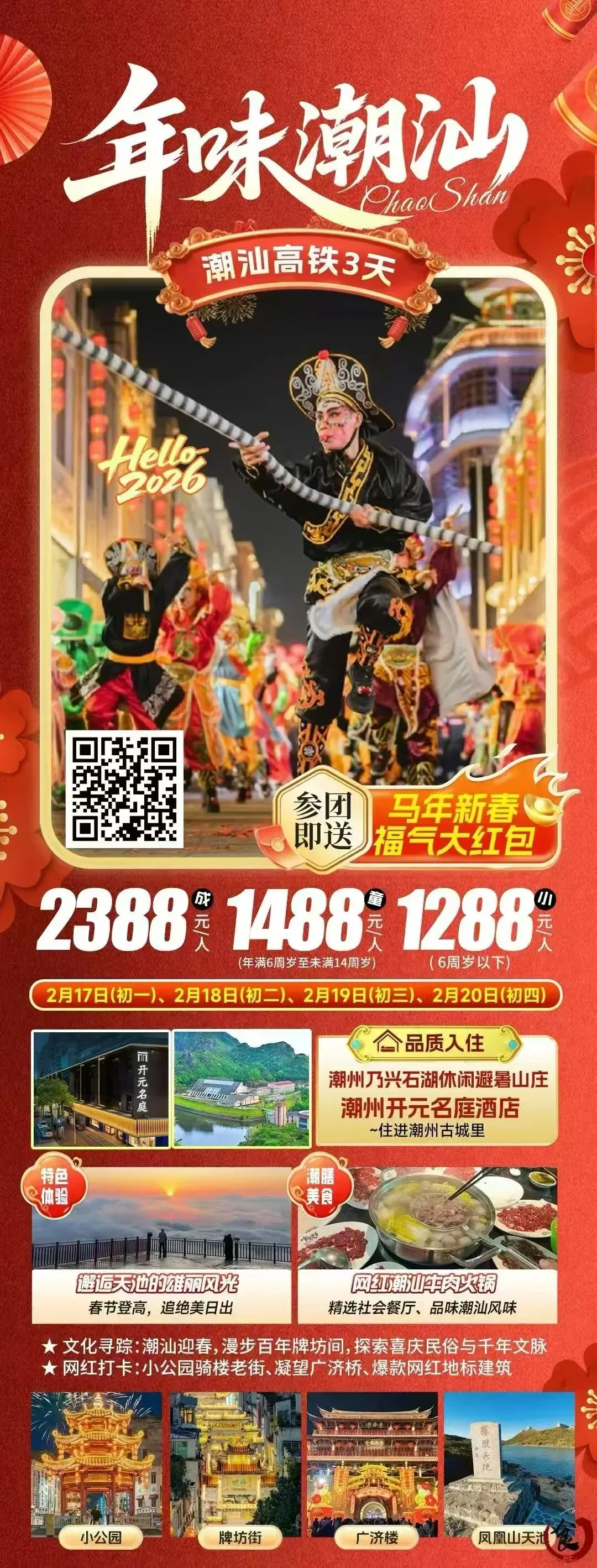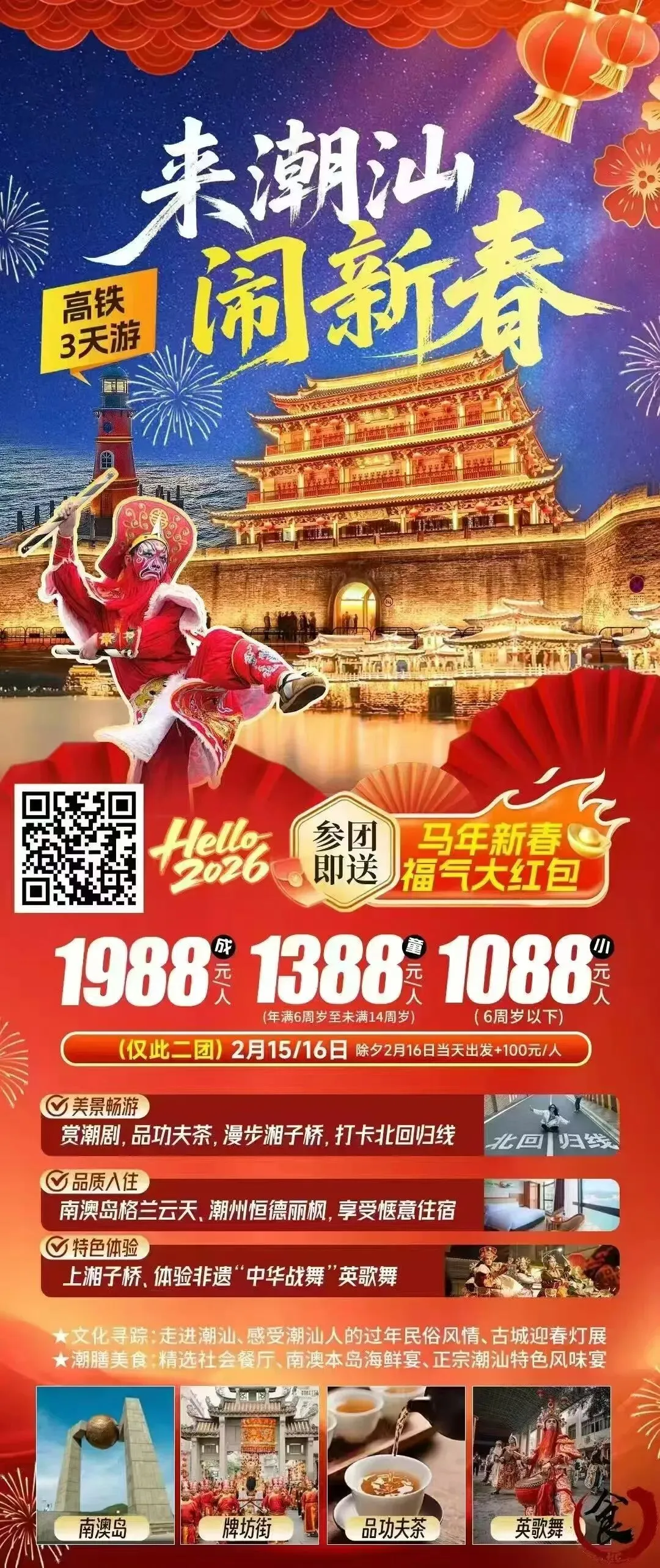 您现在的位置是:首页 > 国内旅游目的推荐 > 正文 国内旅游目的推荐 深圳出发,春节潮汕跟团旅游活动 admin2026年02月15日 19:15:11国内旅游目的推荐8 深圳出发,春节潮汕跟团旅游活动关于我们,深圳宝旅国际旅行社公明广场营业部,AAAA级旅行社:联系我们 转载请说明来源于"旅荐网",部分内容转载自网络,如有侵权请联系qlwl@foxmail.com删除 本文地址:https://www.15386.cn/post/108869.html 上一篇 百色春节省钱指南:20多家景区优惠+住宿套餐一键收藏 下一篇 旅游打卡新高度啊,真牛,哈哈哈哈哈 相关文章 清明来重庆沉浸式旅游攻略 广西贺州,两天一夜的直抄旅游攻略,省钱休闲不折腾! 贵州旅游攻略,五天四夜,吃,住,行,超详细保姆级攻略! 兰州→德令哈 3 天 2 晚旅游攻略 腾讯智能行程规划:说走就走的旅行,AI帮你安排 【旅游指南】学会“嘎伴光”,泼水节当天你最“靓”! 百里杜鹃金坡景区旅游攻略 转让北京西城国内旅行社国内旅行公司转让方案 旅行攻略 | 广西6天5晚亲子游,好吃好玩好休闲~ 宁夏旅游攻略,宁夏人嘴真严 原来淡季这么好玩 发表评论 取消回复 评论列表 这篇文章还没有收到评论,赶紧来抢沙发吧~