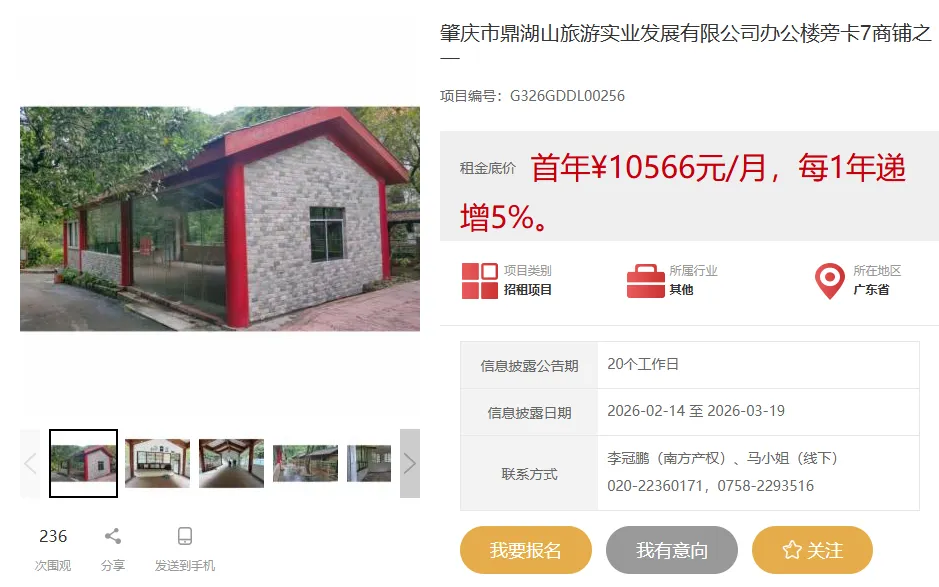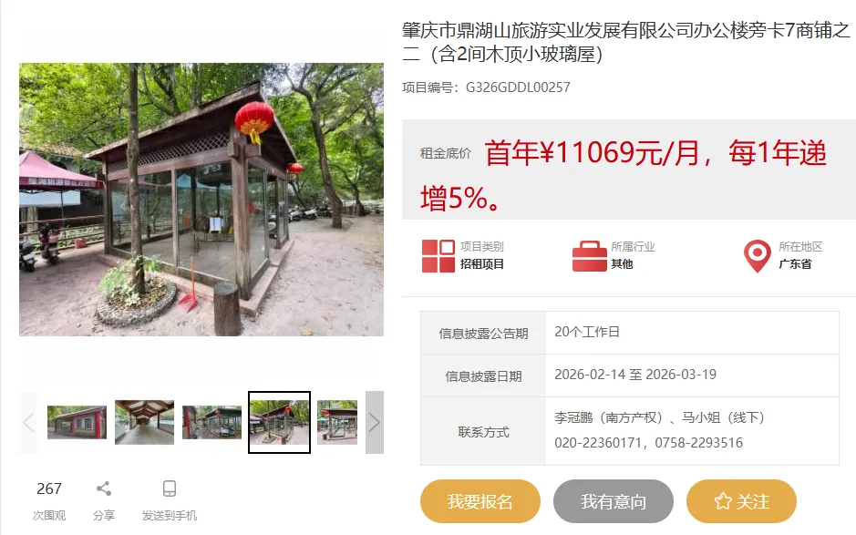 肇庆市鼎湖山旅游实业发展有限公司办公楼旁卡7核心位置,两间稀缺商铺现已火热招租!这里是游客步行游览的优选之路,天然占据景区固定消费旺区,人流如织,商机触手可及!