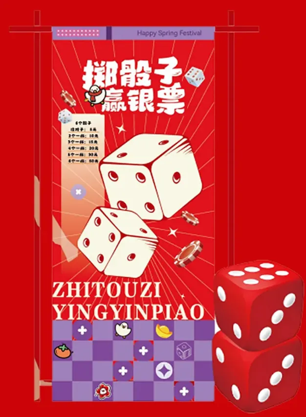 入住即可获取「如春庙会·马上有好市」银票,免费逛庙会,掷出“对子”即有喜,相同点数越多,彩头越大。