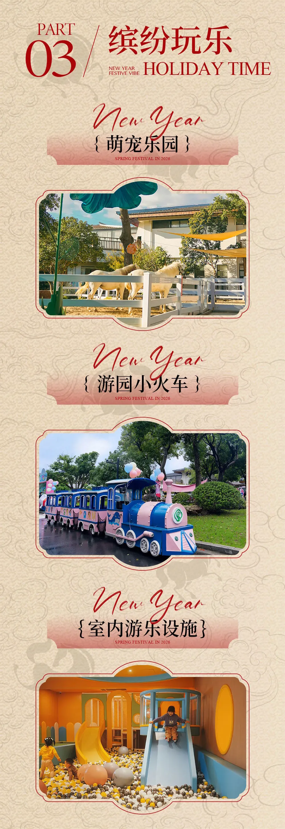 新春佳节,欢乐不停足不出户,即可畅玩丰富游乐项目小朋友欢乐畅玩,大朋友解锁惬意轻松GET更多潮玩可能。