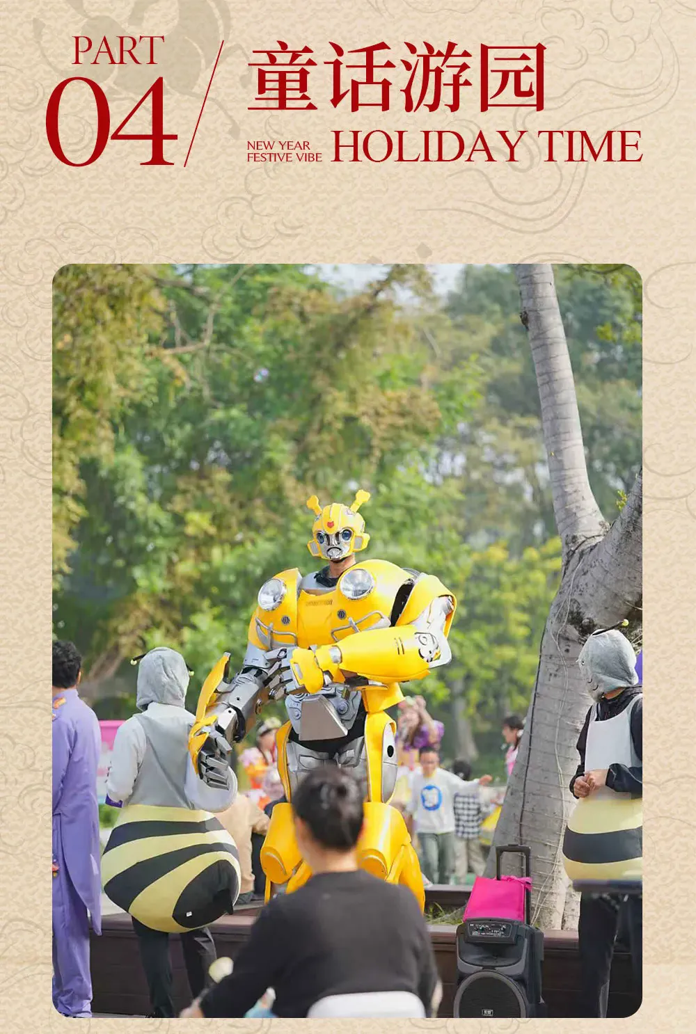 还有古风小丑气球编织、欢乐杂耍,机械人物奇幻巡游传统与科幻碰撞,全家畅玩新春。