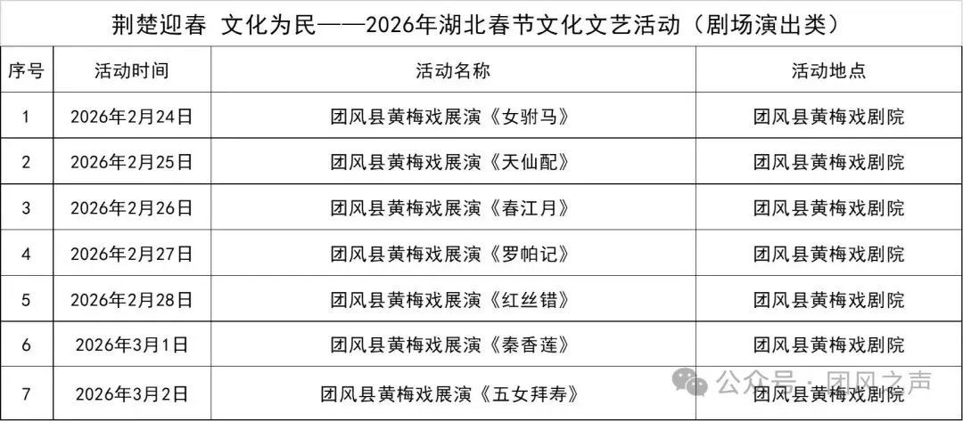 精彩内容:湖北黄梅戏艺术剧院,在黄梅戏大剧场开展“我们的中国梦—文化进万家”黄梅县贺新春惠民演出月活动。