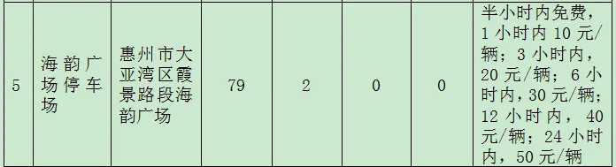地点:惠城区人民政府正门两侧地面停车场、惠城区行政服务中心地面停车场、西湖大剧院地面停车场、一场三馆(惠城区文化馆、图书馆、青少年宫)地下停车场。