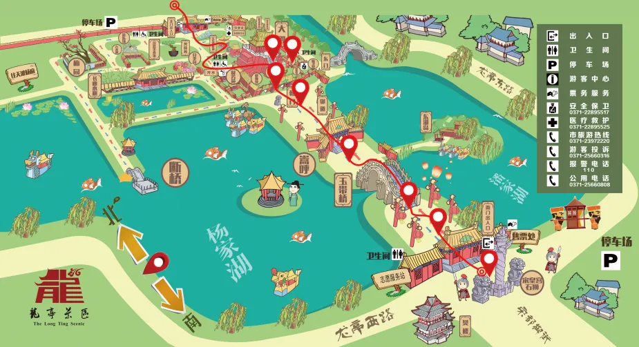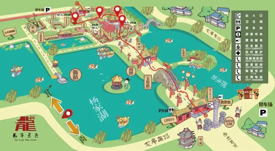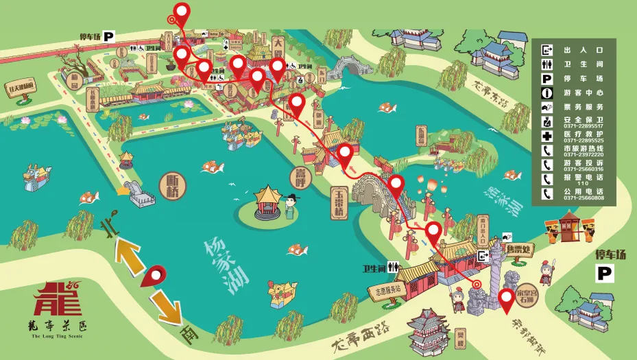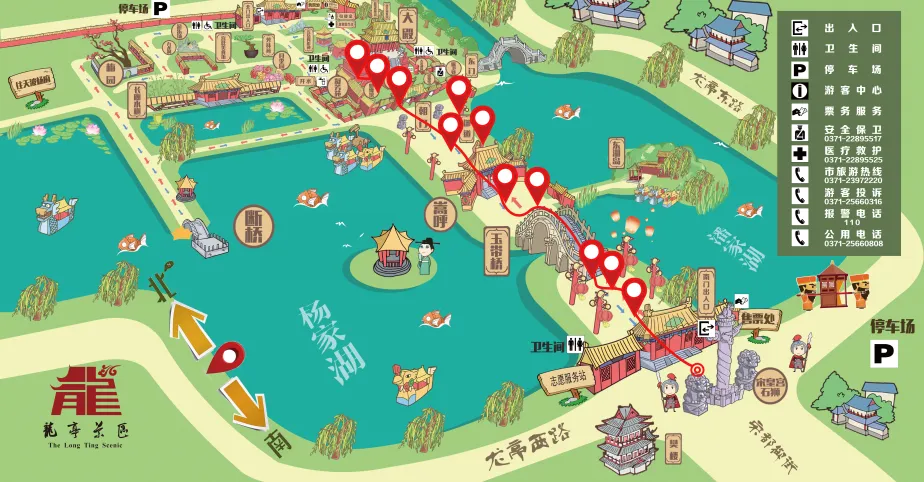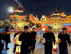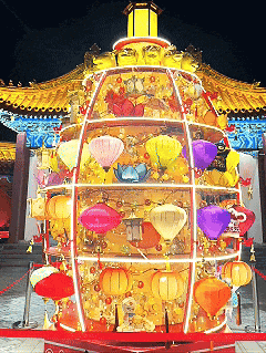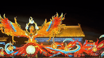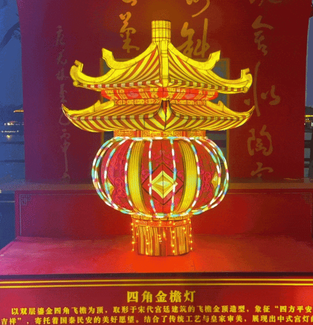 南门午门广场《八骏呈祥》→南门内两侧《灯魁》→玉带桥《宋瓷雅韵》→嵩呼《创新版“鳌山灯”》→朝门广场的《朱雀飞天》→龙亭大殿《麒麟献瑞》等精美灯组