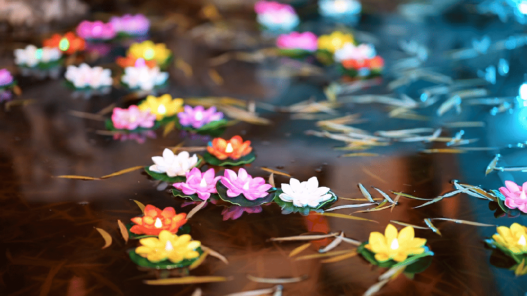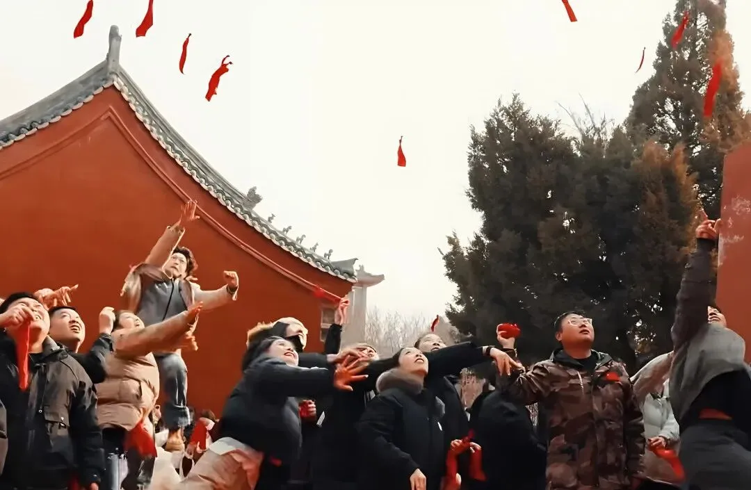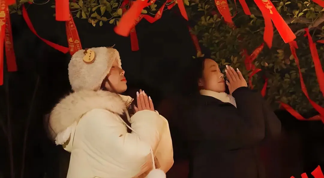 北门进入→大殿后侧(十棵祈福树)→大殿后墙《答案之书》→听香苑(河灯祈愿)→大殿前(孔明灯放飞)