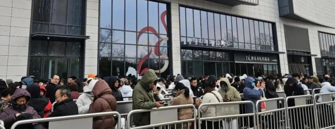 队伍长达数百米!胖东来除夕前一天迎来大批游客,现场预计排队2小时,不停播放着“超市限流”的提示音