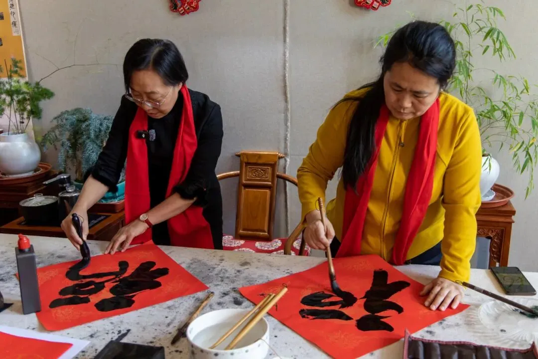 随后,书法名家现场挥毫泼墨,写福字、赠春联,茶香与墨香交织,祝福与欢笑相伴,大家在互动体验中触摸文化根脉,感受新春暖意。