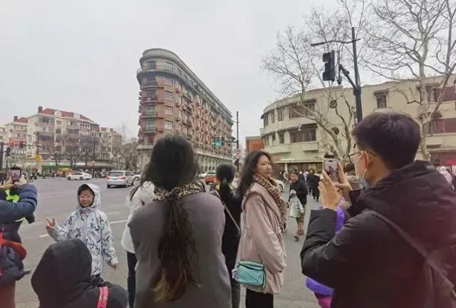 游客纷纷与造型独特的上海武康大楼合影。