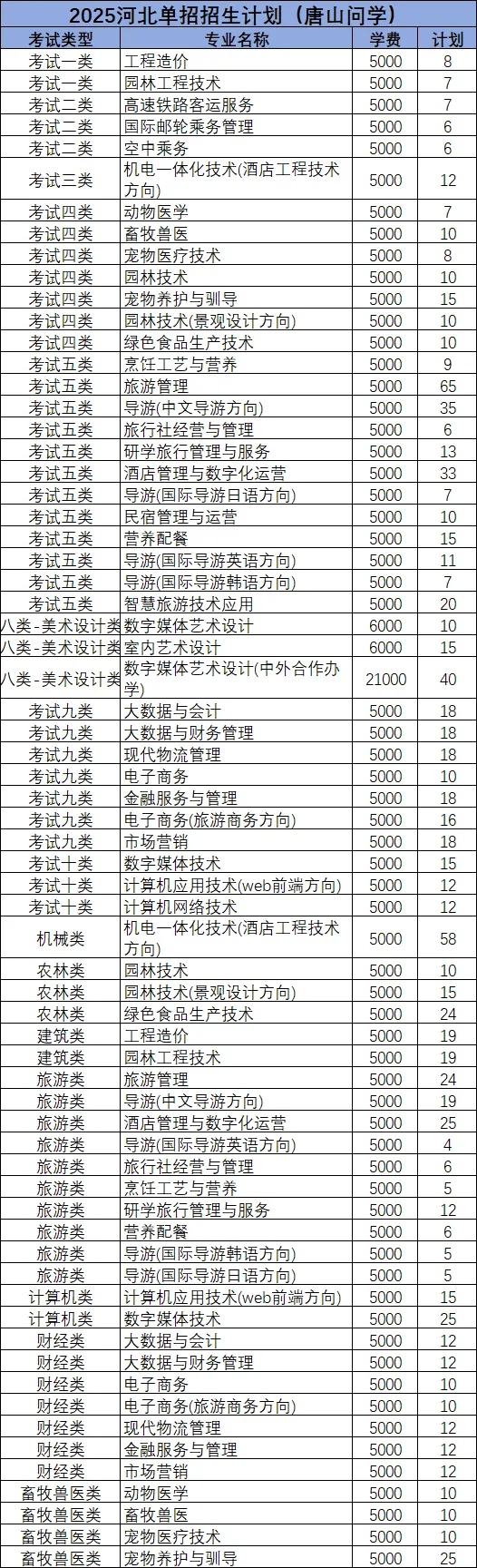 2025年各大类招生计划