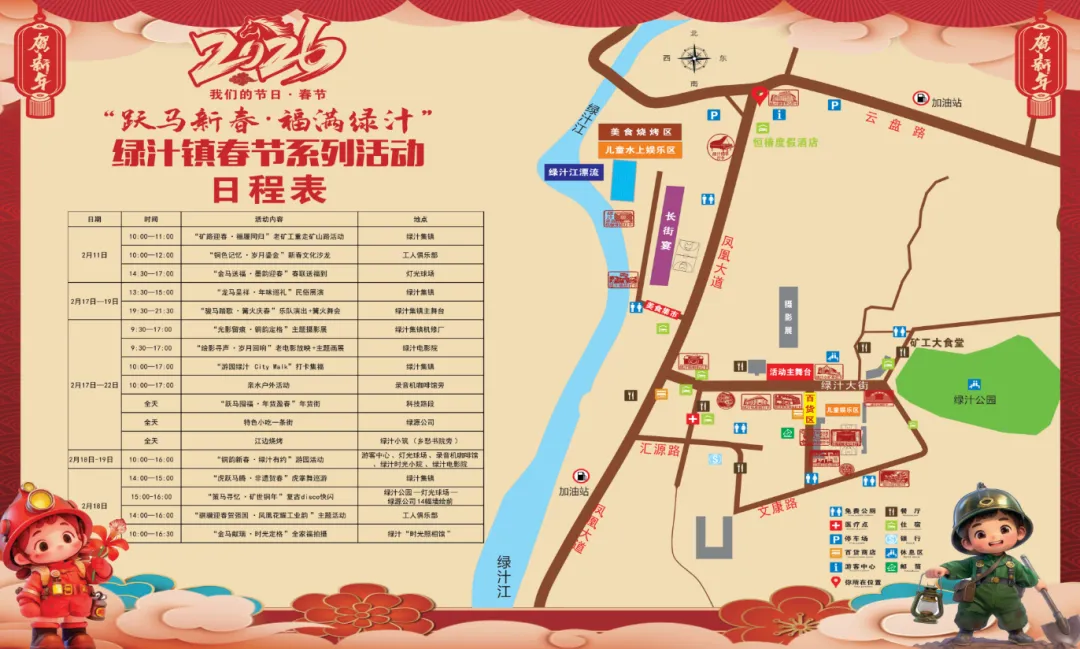 2026年春节期间,绿汁镇将举办“跃马新春·福满绿汁”春节文化旅游系列活动。诚挚邀请大家在即将到来的新春佳节携亲带友共赴绿汁,感受一场“工业风+春节韵”的独特年味体验。天天有活动,日日有惊喜,超多精彩活动等你来打卡,快来绿汁点燃新春佳节假日激情吧~