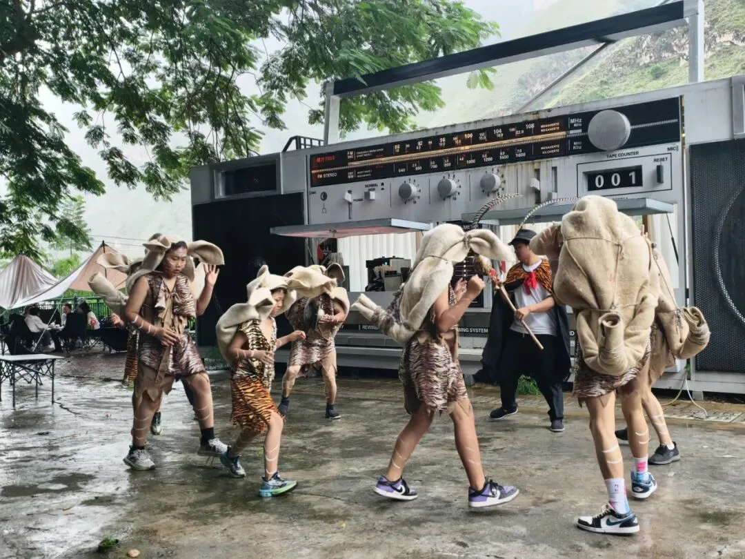 志愿者身着70-80复古服饰,在绿汁公园、灯光球场、绿源公司14幅墙绘前,跳起复古Disco快闪,现场邀请游客加入体验,满满的互动感。