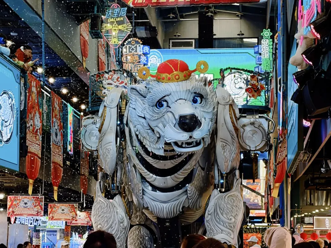 新年期间,赛博秧歌与机器狗舞狮惊艳登场,赛博财神机器人固定场次演出巡演环节好运与趣味兼具,初一和初五,无人机红包雨定时降落,为游客送上满满惊喜。活动期间,还将推出福熊祈福仪式等特色活动。此外,熊洞街还以游戏化玩法串联街区,核心活动“神熊大富翁”将在初一至初七热力开启,涵盖亲子畅玩票折扣、套圈次数加成、影院票兑换、北北IP周边兑换等多重权益,让每一次参与都充满惊喜。