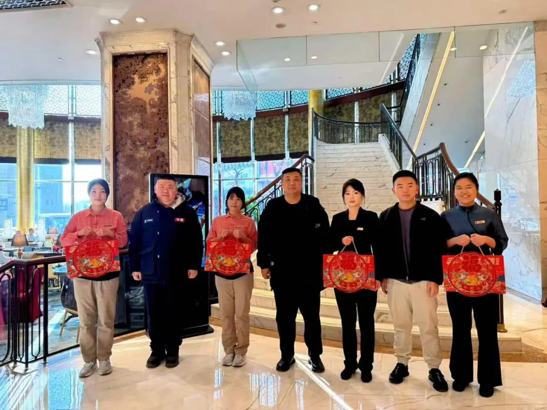 新春佳节将至,年味渐浓。为关心因实习工作不能返乡过年的省外学生,让坚守岗位、留长过年的实习学子感受到学校的温暖与牵挂,在吉林工商学院党委学生工作部统筹指导与精心组织下,2月14日-15日,党委学工部部长高楠带领旅游文化传播学院学团办主任左广军、辅导员于霄达,前往香格里拉大酒店等地看望慰问实习学生,为同学们送上新春祝福。