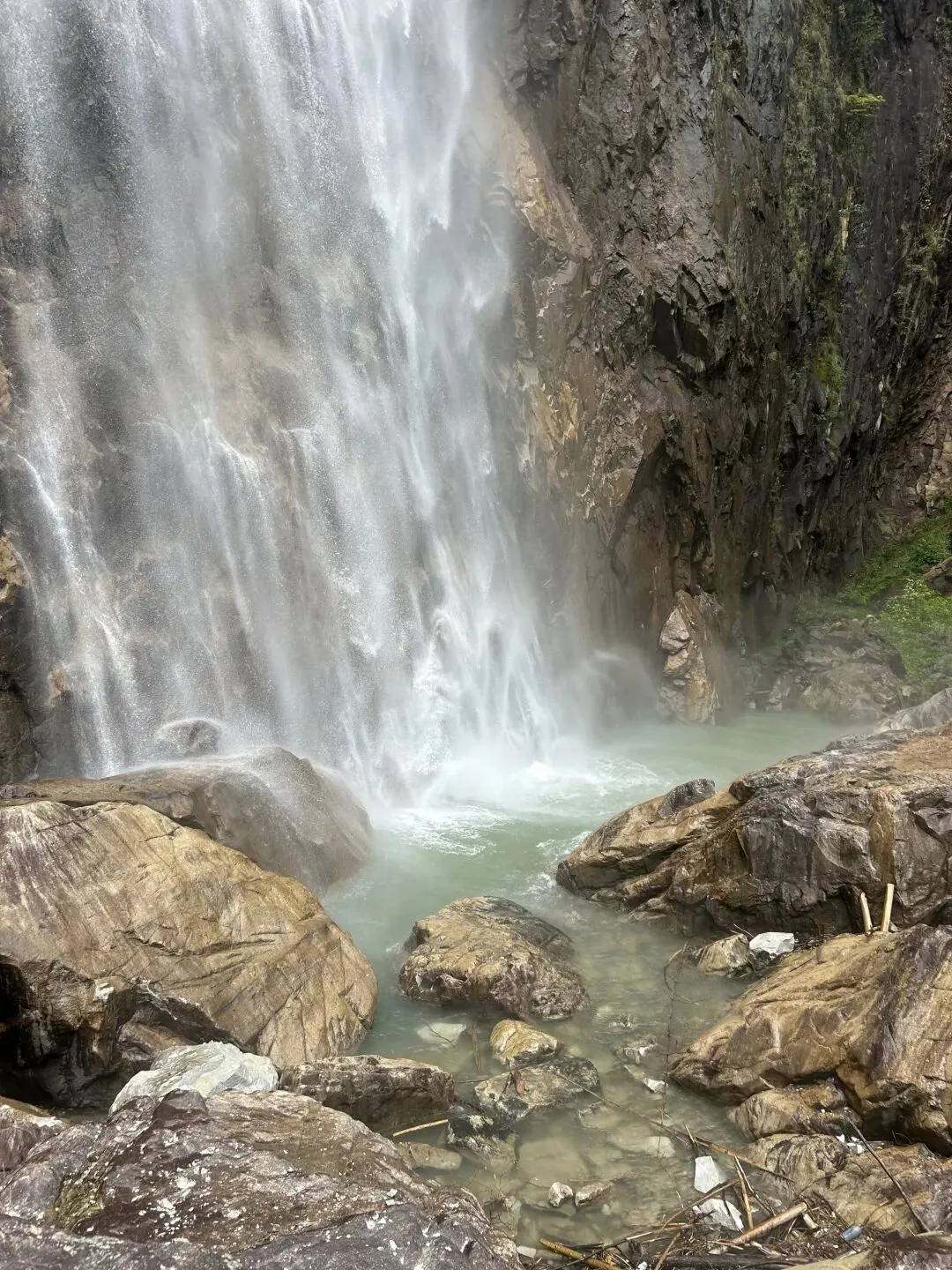 黄竹头村的公路旁高石寨瀑布,冬季水流量较少。
