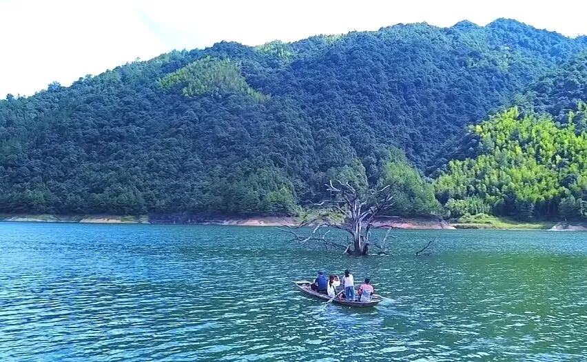 湖面上傲然挺立、根植湖底二十多年不倒的孤勇“坚强树“。