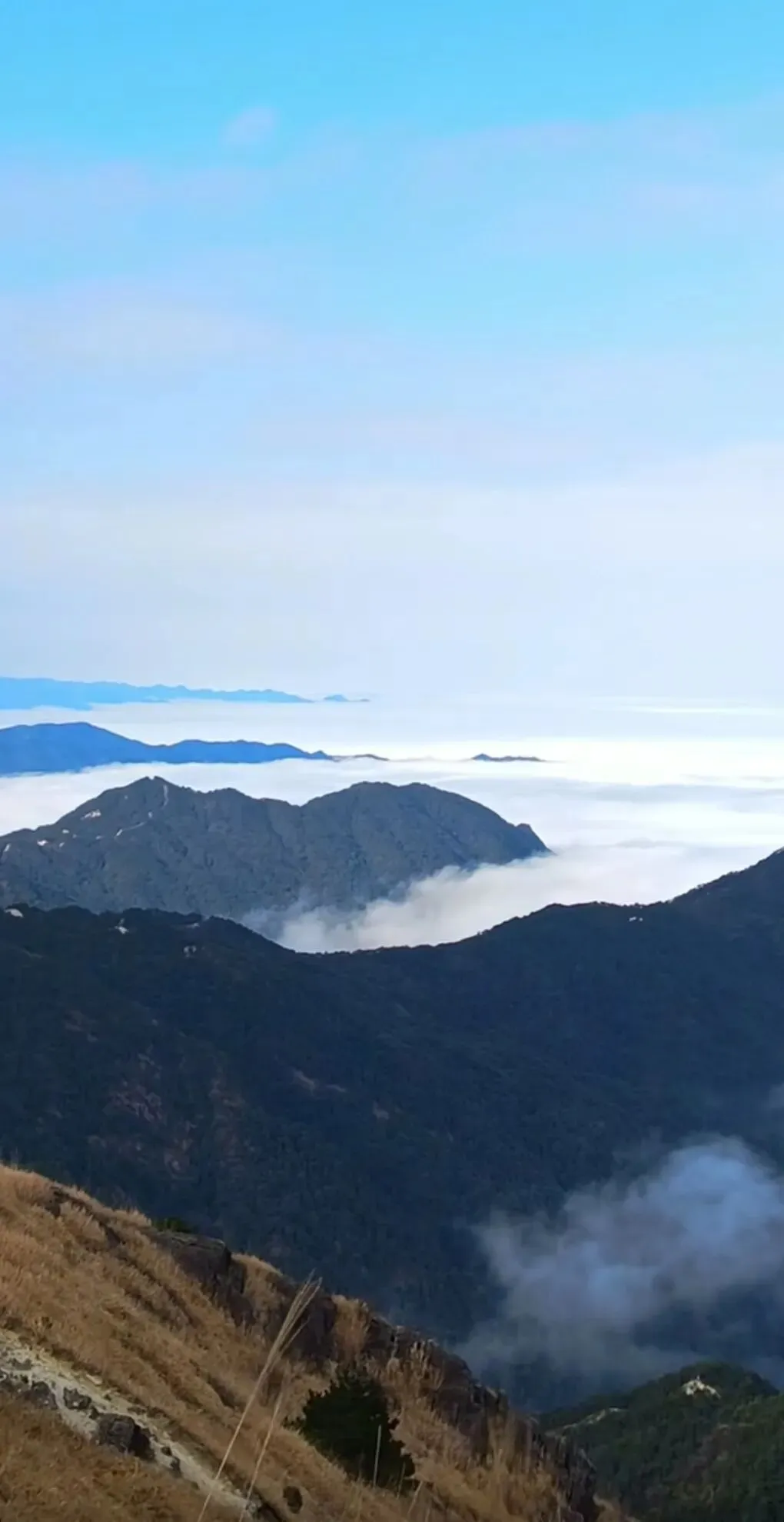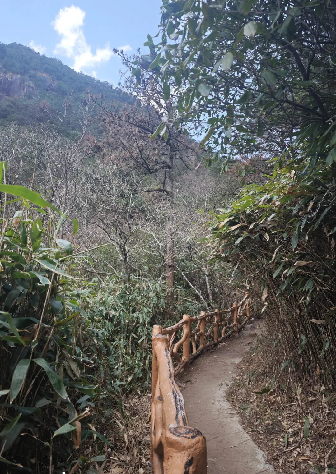 从高坪中村村委到公墓旁那一段路,有乡道,但春节期间爬山人多,现在限制开车前往,只能步行。到达公墓旁再攀行约三公里山路至终点营地。