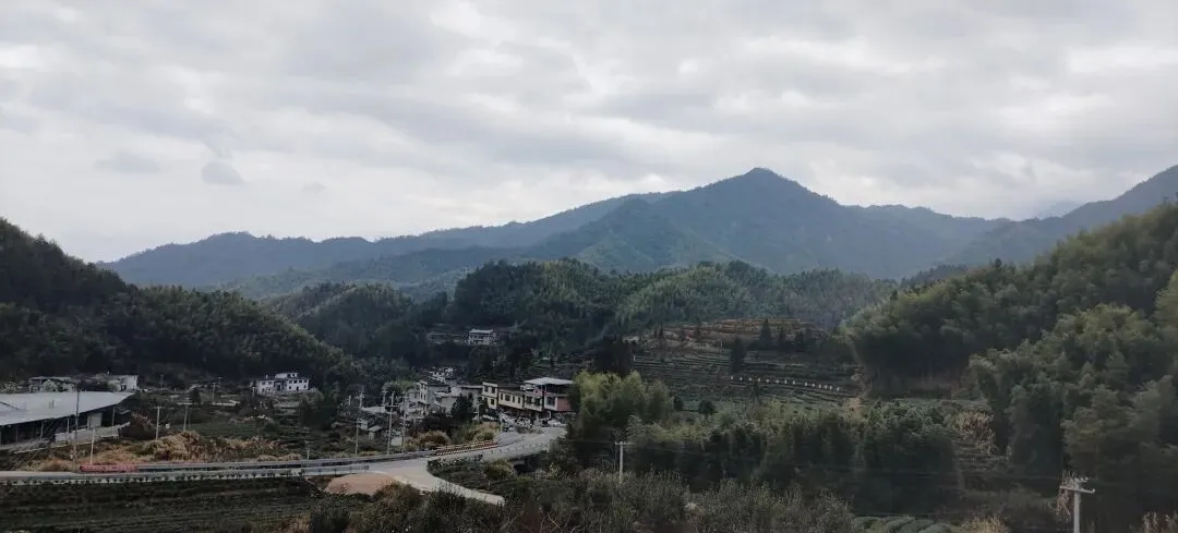进入高坪明坑村,登山回望拍个照。.