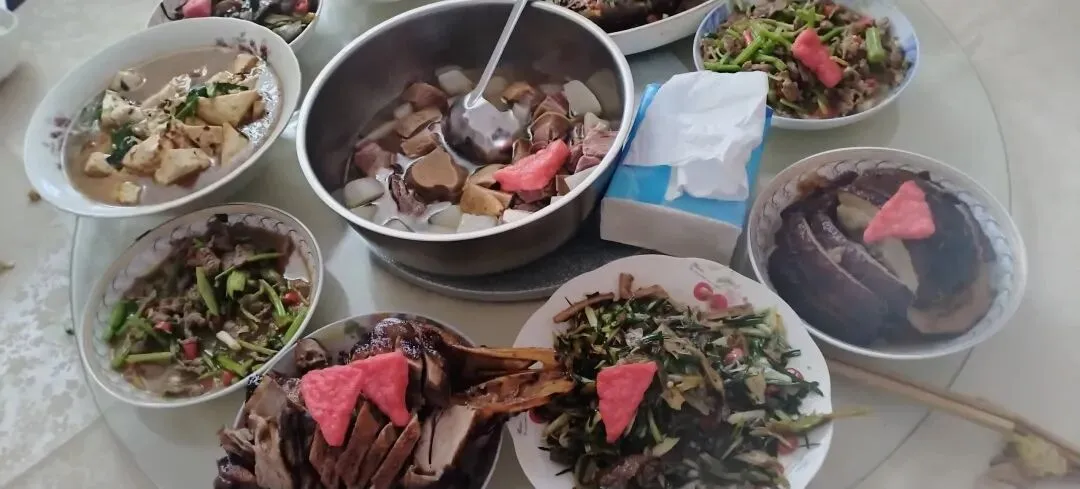 午饭由在云南经商回家度假的光波请客,菜肴有云南火腿、新鲜羊肉,总之一大桌好菜,狠狠的嗟一顿。