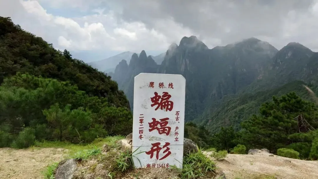 蝙蝠形 :位于江西吉安市遂川与赣州市上犹交界,在鹰轿线中段,与五指峰,鹰盘山隔山相望,因其顶峰平缓,从高空俯瞰形似蝙蝠而得名。海拔约1560米,沿途经过竹林、松树林和杉树林,如果遇到下雪天,几棵松树会显得格外美丽。此外,还有两棵类似迎客松的观景台,可以远眺云海,拍照效果极佳。蝙蝠形即是五指峰后山。