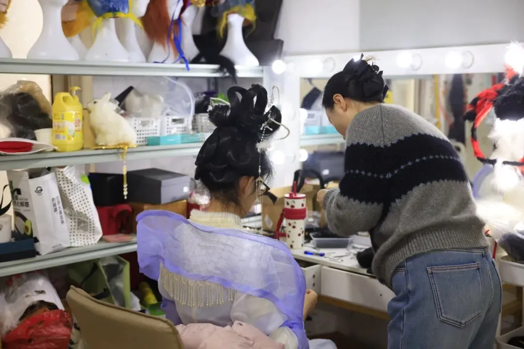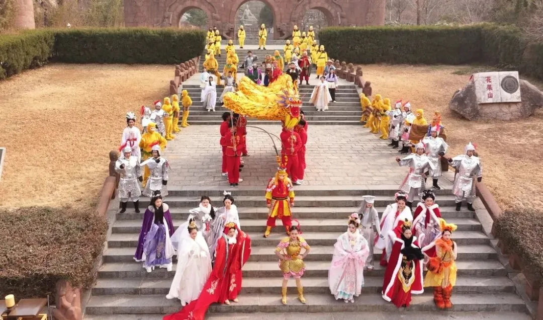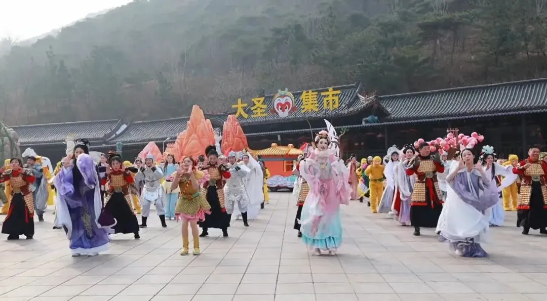 再往里走,一声“妖怪,哪里跑”划破山林——是花果山西游神魔团在精心排练。“我们现在多打磨一下表演细节,春节好给游客们带去最好的感受。”孙悟空扮演者说道。他们身着单薄便衣,反复打磨走位、对词、身段,将师徒四人的神态演绎得鲜活生动,从唱腔咬字到动作规范,从游客互动到路线衔接,每一处细节都精益求精,鼓足了劲儿为游客带来最精彩的表演。“有时候中午错过了吃饭时间,景区食堂专门为我们留了热乎乎的饭菜,这份贴心让我们排演起来更有劲儿!”