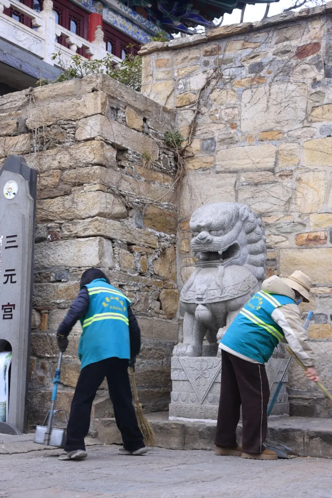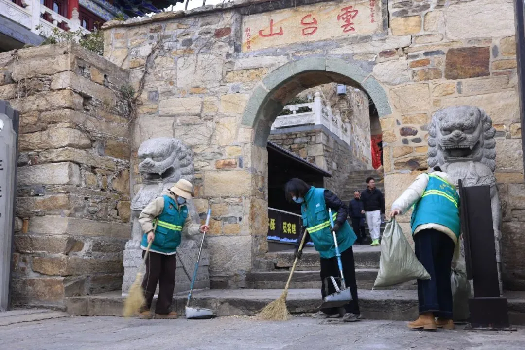 喧闹的背后,总有一群默默奉献的“守护者”。景区保洁人员正穿梭在景区的每一个角落,弯腰清扫路面杂物、细致擦拭公共设施,不放过任何一处卫生死角,用一双双勤劳的双手,守护着山间的清朗整洁,为游客营造干净、舒适的游览环境,让每一位来客邂逅新春美好。“看到景区干干净净的,我们自己看着也舒心。”保洁员赵大哥笑了笑。“在山上清扫垃圾也不怎么冷,景区给我们准备了热水和暖宝宝,有时候还冒汗呢。”不远处,另一位保洁大姐正蹲在花坛边,静静捡拾草丛间的垃圾,她没出声,只是安静地做着,像在打理自家的院子。