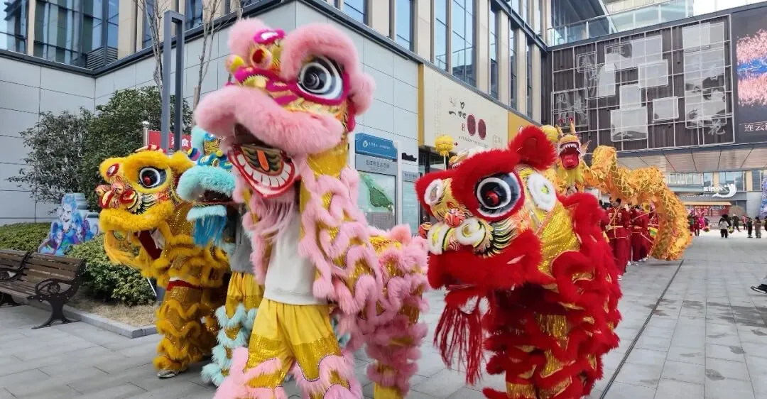 而在渔湾景区,另一番热闹正在紧锣密鼓地酝酿。广场上,锣鼓点儿已经敲起来了。几只“狮子”正踩着鼓点腾跃翻滚,狮头高高昂起,又俯身从板凳下一穿而过,引得围观的工作人员一阵叫好。“我们是从深圳过来的,今年肯定是在连云港过年,希望给大家带来最精彩的表演!”领队站在场边拍着手,嗓门洪亮。汗水顺着舞狮小伙子的额角滑下来,他掀开狮头透了口气,又赶紧扣回去,“再来一遍!”此时,景区工作人员也穿梭在人群中,拿着面包等食物吆喝:“大家辛苦啦,吃点面包,垫垫肚子。”