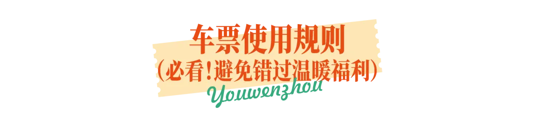 有效期要求 :车票3日内有效(含当天,以到达温州时间为准)。举例:游玩2月15日免费景区,可使用2月13日、14日、15日的有效抵温车票,给旅途多一份灵活与从容。