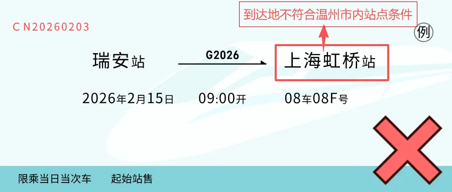车票范围 :仅限出发地为温州市外站点、到达站为温州市内站点的火车票,本地往返车票不参与。