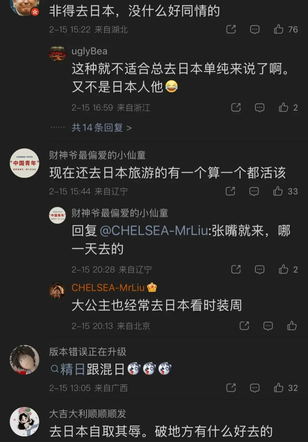 有网友说:我国这位游客,在日本遭受羞辱,纯粹活该。国家不让去,你偏偏要去,被人家骂了,也不敢有过多的反抗,花钱买罪受,这怪谁?