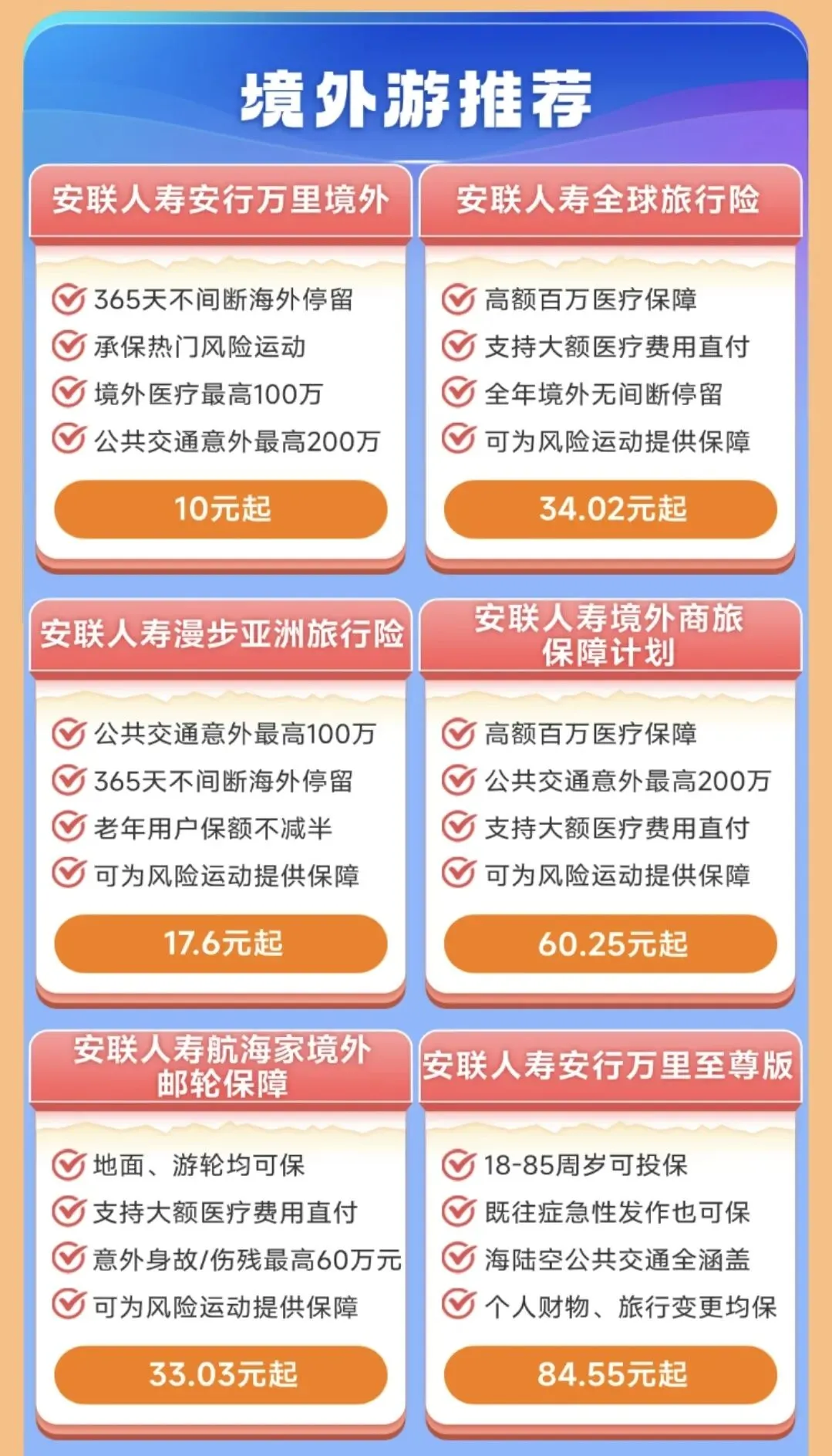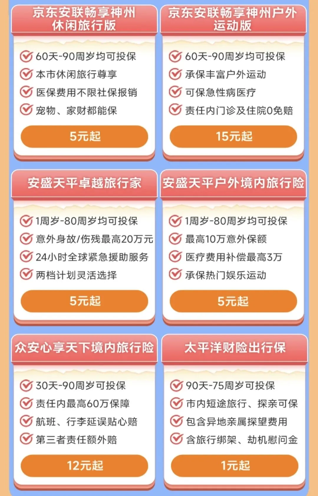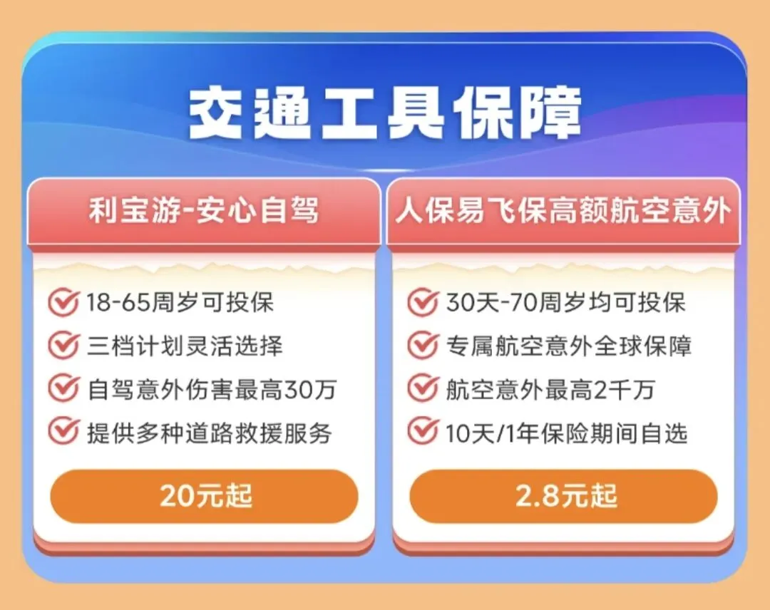 如有需要按需选择合适保障险种,境内游最低2元/天起,境外游最低10元/天起。