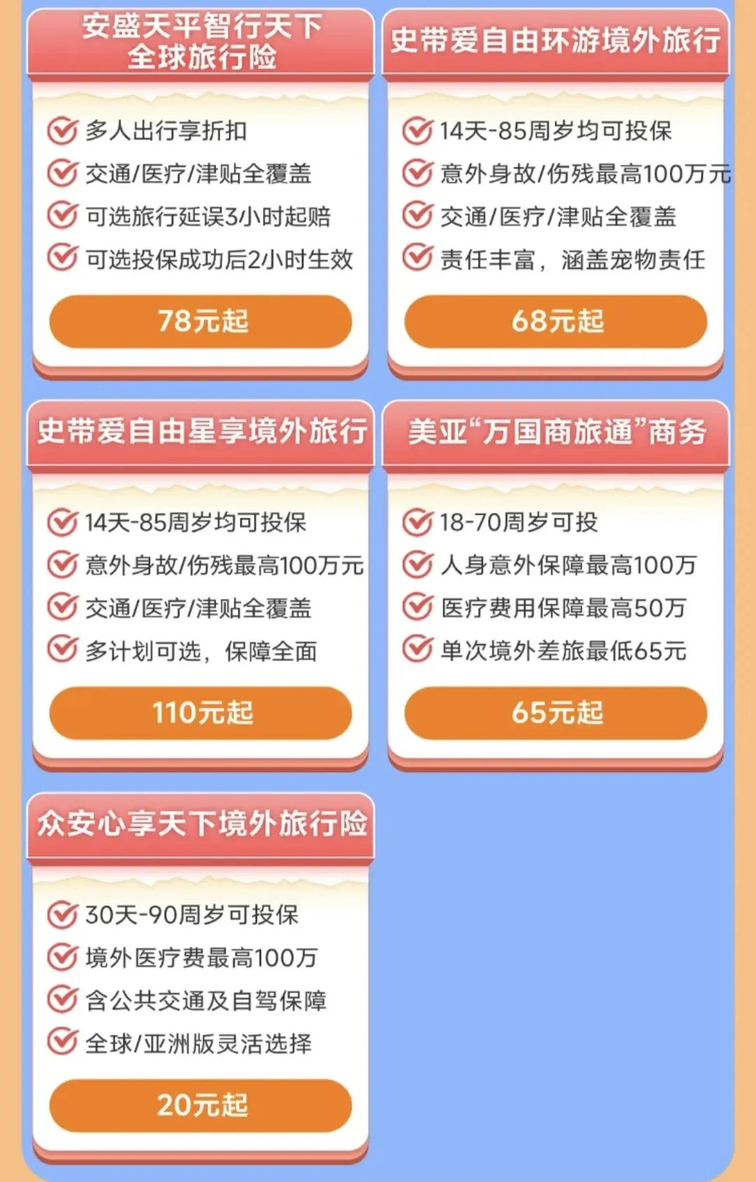 以下是整理的比较全乎的热门意外险合集,无论是境内还是境外出行,建议朋友们按需选择合适的险种,出门在外保障先行。