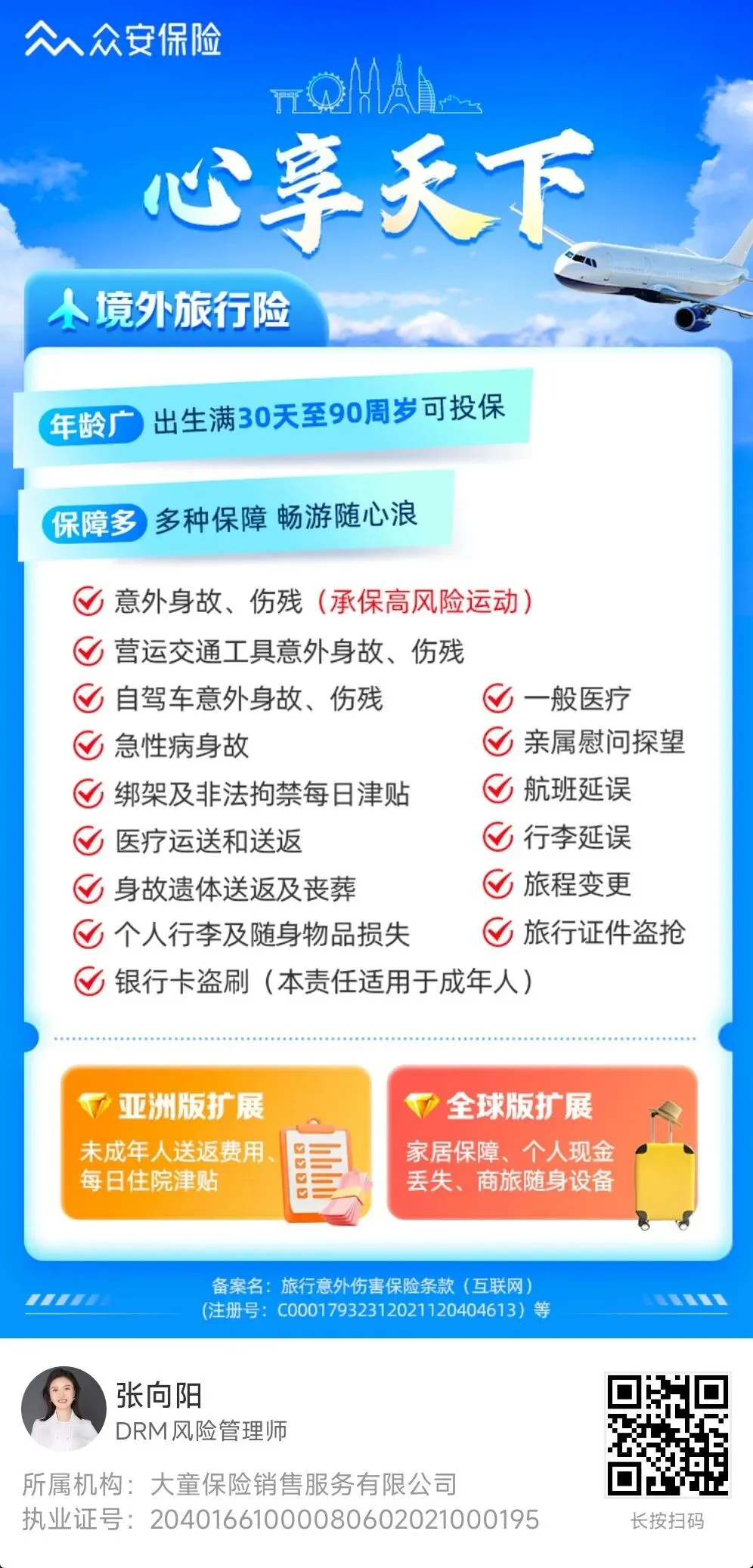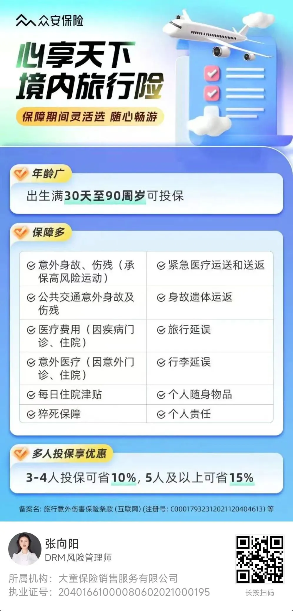 弥补保障缺口:社保保障范围有限,对于一些突发的意外事故,可能无法提供全面的保障。旅游意外险可以为额外补充,为你提供更全面、更针对性的保障。