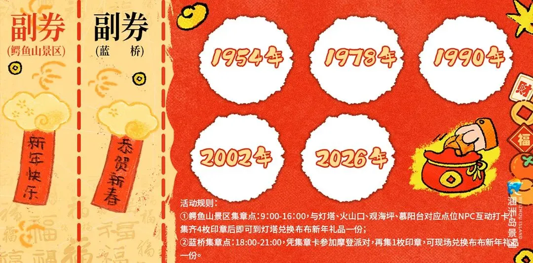 集齐"马年怀旧·海岛时光"主题4枚印章,即可至灯塔兑换限定文创新年好礼。
