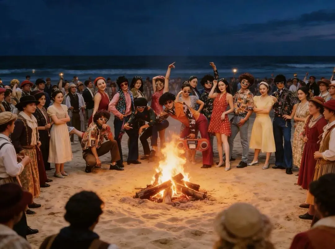 · 沙滩篝火派对,全场Disco蹦迪斗舞,热浪席卷沙滩。