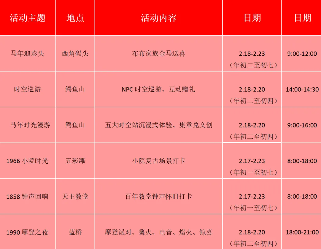⏰活动时间:2.18-23(年初二至初七)9:00-12:00