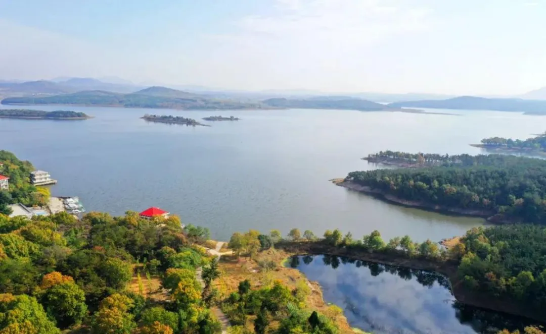 铜山湖是驻马店周边最大的水库,但它不是那种开发成景区的地方,这个湖就是个水库,没有围栏,没有售票处,你直接开车就能到湖边。2-3月的铜山湖,水位不高,湖岸线露出一大片滩涂,有些地方还能看到去年夏天留下的水草,干枯了,但还立在那。冬天的湖水特别清,因为没什么游客,也没什么船,湖面平得像面镜子,风一吹,就起一层细细的波纹。
