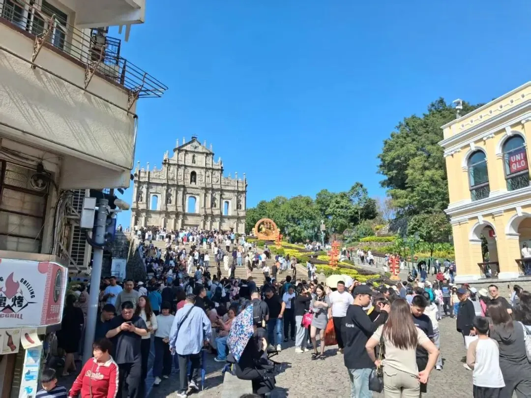 【本報訊】農曆新年內地九天長假期昨日正式開始,有不少旅客春節前夕來澳旅遊,順道辦年貨。關閘口岸、大三巴牌坊、議事亭前地一帶人流增多。春節燈飾成了旅客打卡熱點,相當熱鬧。